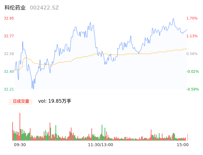 04月29日,科伦药业收报32.83,股价涨幅1.33%,成交金额6.48亿元,换手率1.52%。