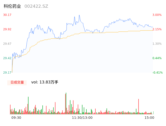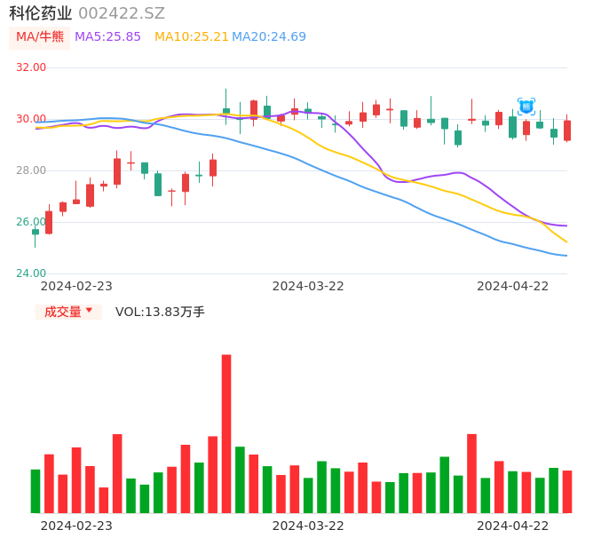 04月22日,科伦药业收报29.93,股价涨幅2.19%,成交金额4.13亿元,换手率1.06%。