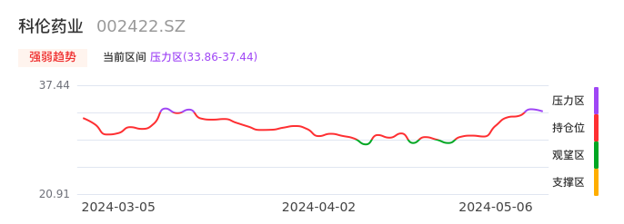 我们来看一下该股的九方特色指标强弱趋势的情况:科伦药业近日从持仓区进入压力区。股价出现一波快速拉升行情,目前上升动能较为充足可继续持股。注意今日上方压力位:37.44元是否能有效突破。