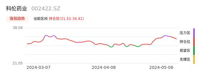 我们来看一下该股的九方特色指标强弱趋势的情况:科伦药业近日从压力区回到持仓区。股价快速拉升后出现持续调整。后续主要关注下方支撑位:31.51元是否能启稳回升。
