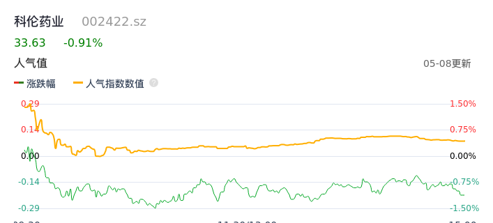 05月08日,科伦药业收报33.63,股价涨幅-0.91%,成交金额5.16亿元,换手率1.17%。