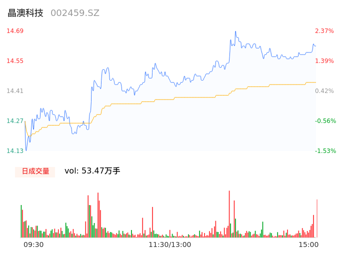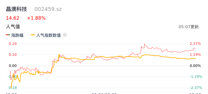 05月07日,晶澳科技收报14.62,股价涨幅1.88%,成交金额7.73亿元,换手率1.62%。
