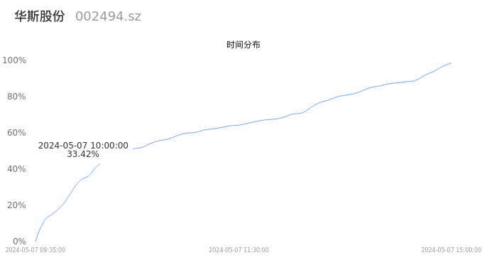 002494华斯股份2024年05月07日成交11.66万手,成交金额4575.41万元,相较昨日缩量5.16万手,换手率4.07%,成交清淡。