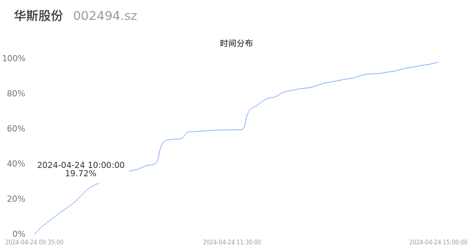 002494华斯股份2024年04月24日成交27.03万手,成交金额9568.43万元,相较昨日放量16.56万手,换手率9.43%,成交清淡。