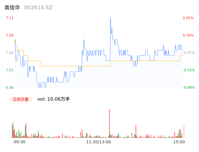 05月14日,奥佳华收报7.07,股价涨幅0.28%,成交金额7079.73万元,换手率2.28%。