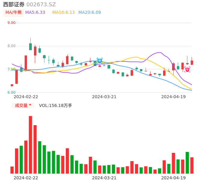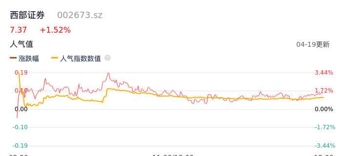 04月19日,西部证券收报7.37,股价涨幅1.52%,成交金额11.52亿元,换手率3.80%。