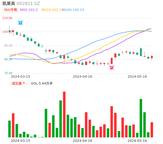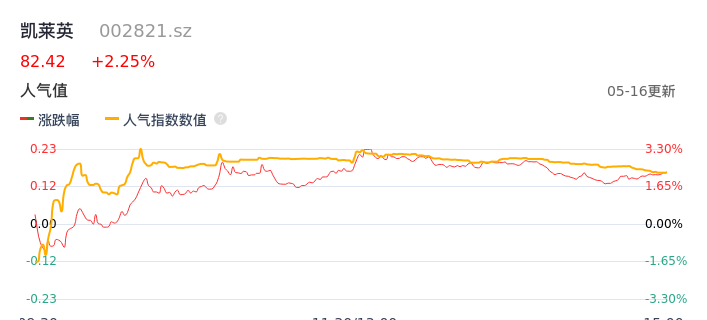 05月16日,凯莱英收报82.42,股价涨幅2.25%,成交金额4.45亿元,换手率1.65%。