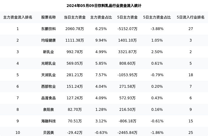 从主力资金流向来看,饮料乳品行业今日主力资金流入10.22亿元,在所有申万二级行业中排名:61/131。