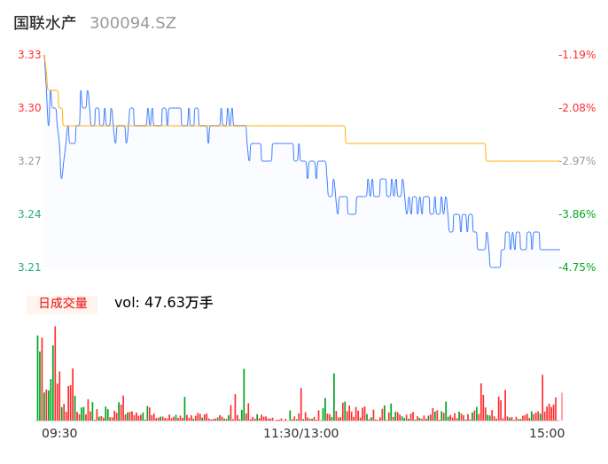 05月13日,国联水产收报3.22,股价涨幅-4.45%,成交金额1.56亿元,换手率4.31%。