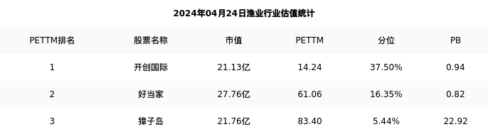 从估值角度看:国联水产最近4个季度累积净利润为亏损,估值水平无法判断,建议多关注公司经营变化情况,注意风险。