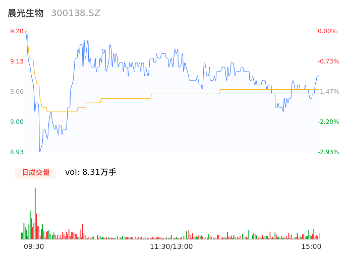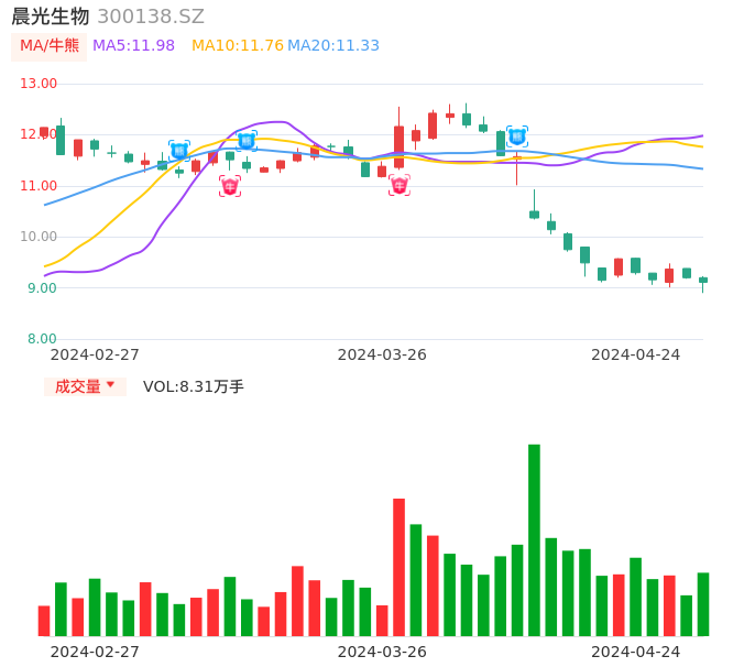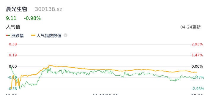 04月24日,晨光生物收报9.11,股价涨幅-0.98%,成交金额7535.19万元,换手率1.86%。