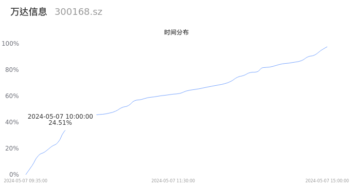 300168万达信息2024年05月07日成交9.90万手,成交金额5874.69万元,相较昨日缩量2.82万手,换手率0.73%,成交清淡。