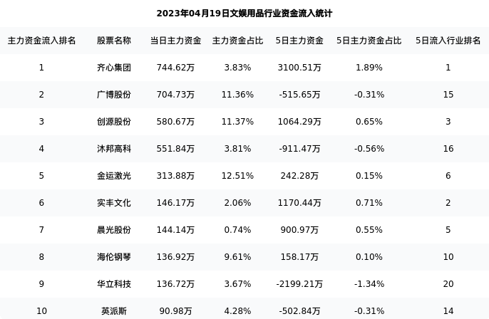 从主力资金流向来看,文娱用品行业今日主力资金流入2.49亿元,在所有申万二级行业中排名:126/131。