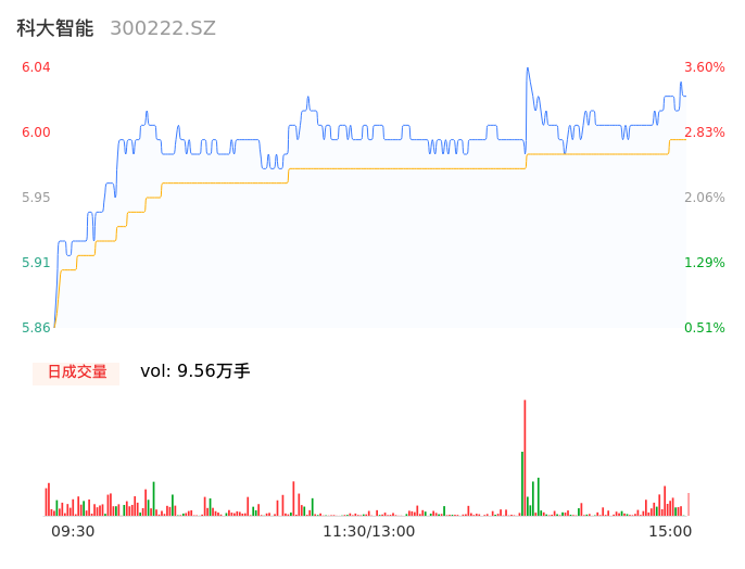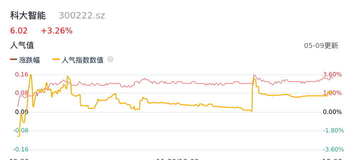 05月09日,科大智能收报6.02,股价涨幅3.26%,成交金额5721.82万元,换手率1.50%。