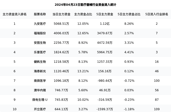 从主力资金流向来看,医疗器械行业今日主力资金流入24.59亿元,在所有申万二级行业中排名:96/131。