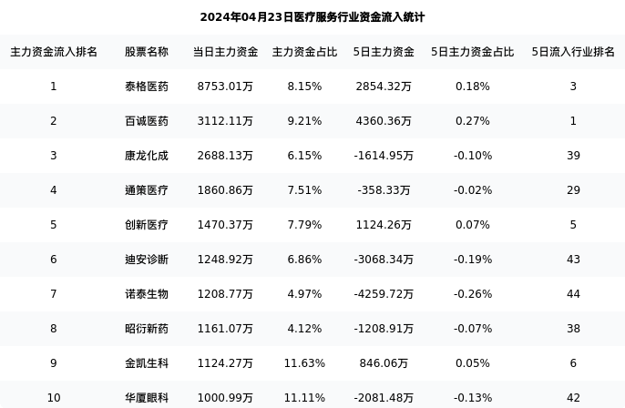 从主力资金流向来看,医疗服务行业今日主力资金流入36.78亿元,在所有申万二级行业中排名:43/131。