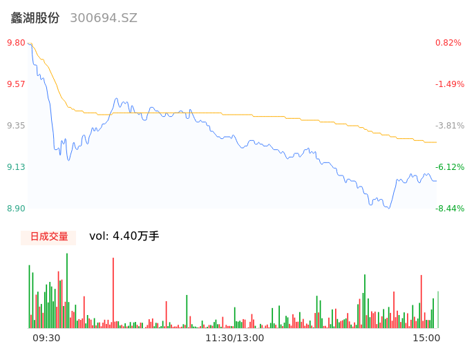 04月15日,蠡湖股份收报9.04,股价涨幅-7.00%,成交金额4072.90万元,换手率2.04%。