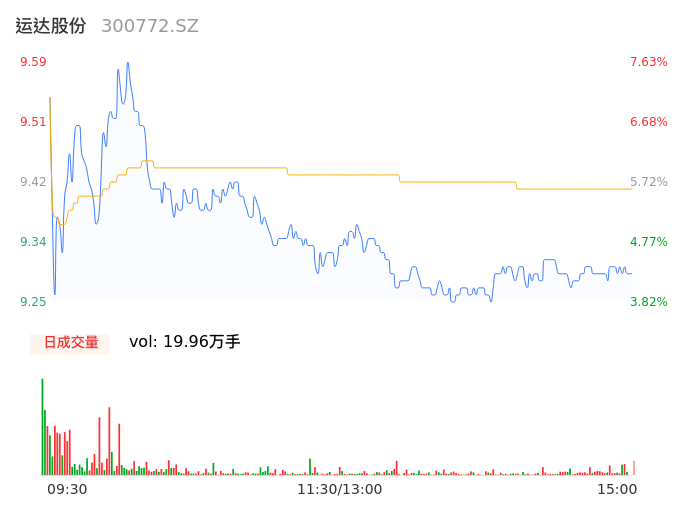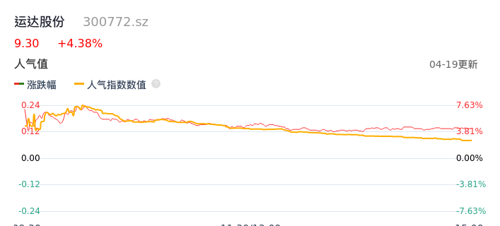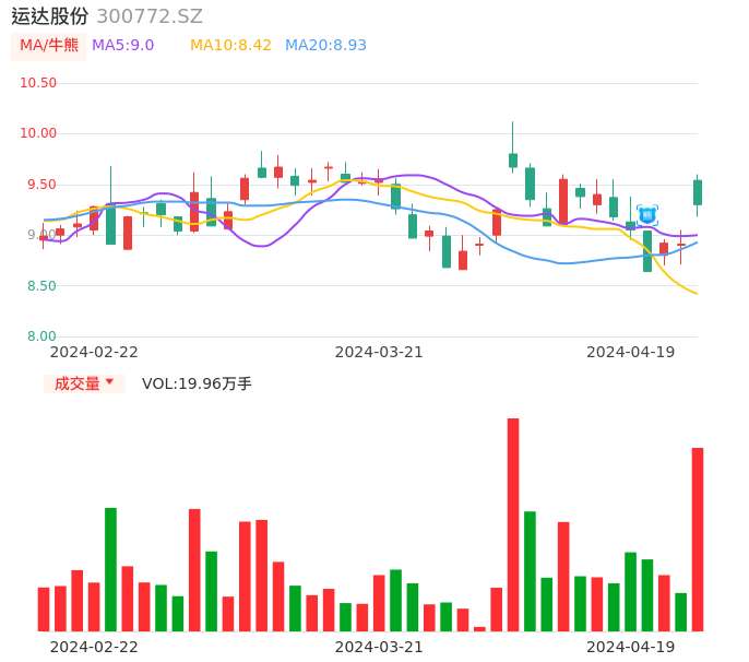 04月19日,运达股份收报9.30,股价涨幅4.38%,成交金额1.88亿元,换手率2.89%。