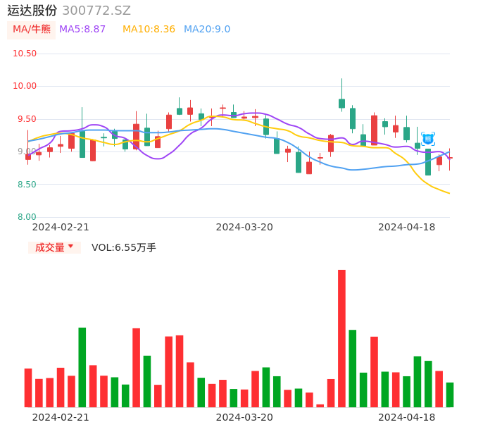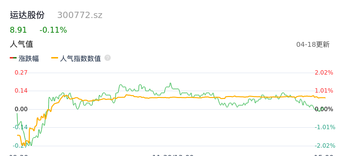 04月18日,运达股份收报8.91,股价涨幅-0.11%,成交金额5846.14万元,换手率0.95%。