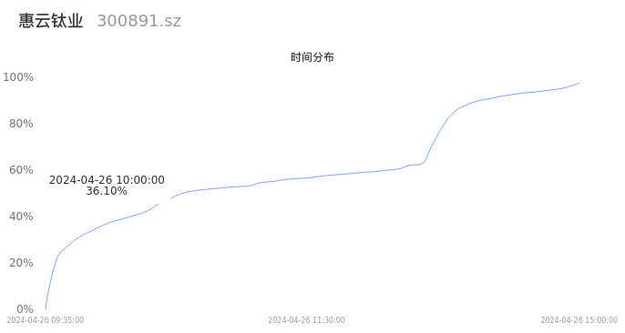 300891惠云钛业2024年04月26日成交42.49万手,成交金额3.96亿元,相较昨日放量7.92万手,换手率12.78%,成交活跃。