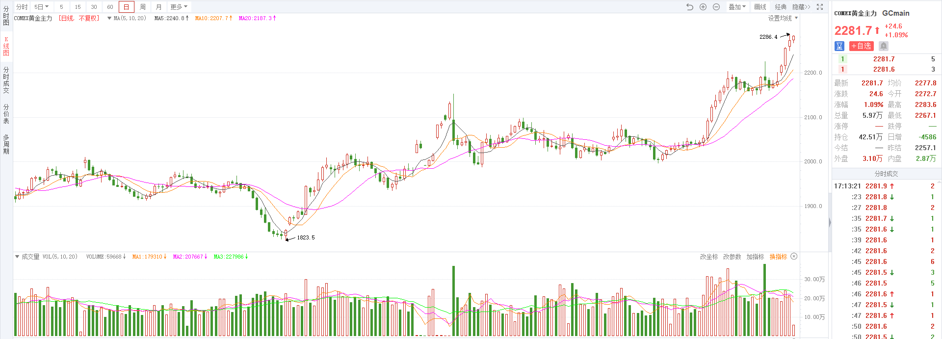 现货黄金首次涨至2250美元关口。