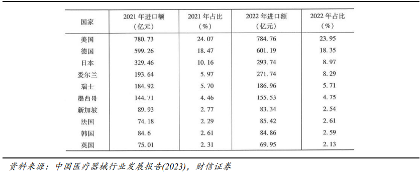 国内已出台多项政策支持自主创新,鼓励医疗机构在质优价廉的前提下购买国产医用耗材。2016年,国务院办公厅发布的《关于促进医药产业健康发展的指导意见》中,就曾提到国产药品和医疗器械能够满足要求的,政府采购项目原则上须采购国产产品,逐步提高公立医疗机构国产设备配置水平;2021年财政部及工信部联合发布的《政府采购进口产品审核指导标准》(2021年版)明确规定了政府机构(事业单位)采购国产医疗器械及仪器的比例要求,其中137种医疗器械全部要求100%采购国产,12种医疗器械要求75%采购国产,24种医疗器械要求50%采购国产,5种医疗器械要求25%采购国产;目前包括浙江、广东、四川在内的多省份发文表示限制公立医院进口医疗器械品种数量。