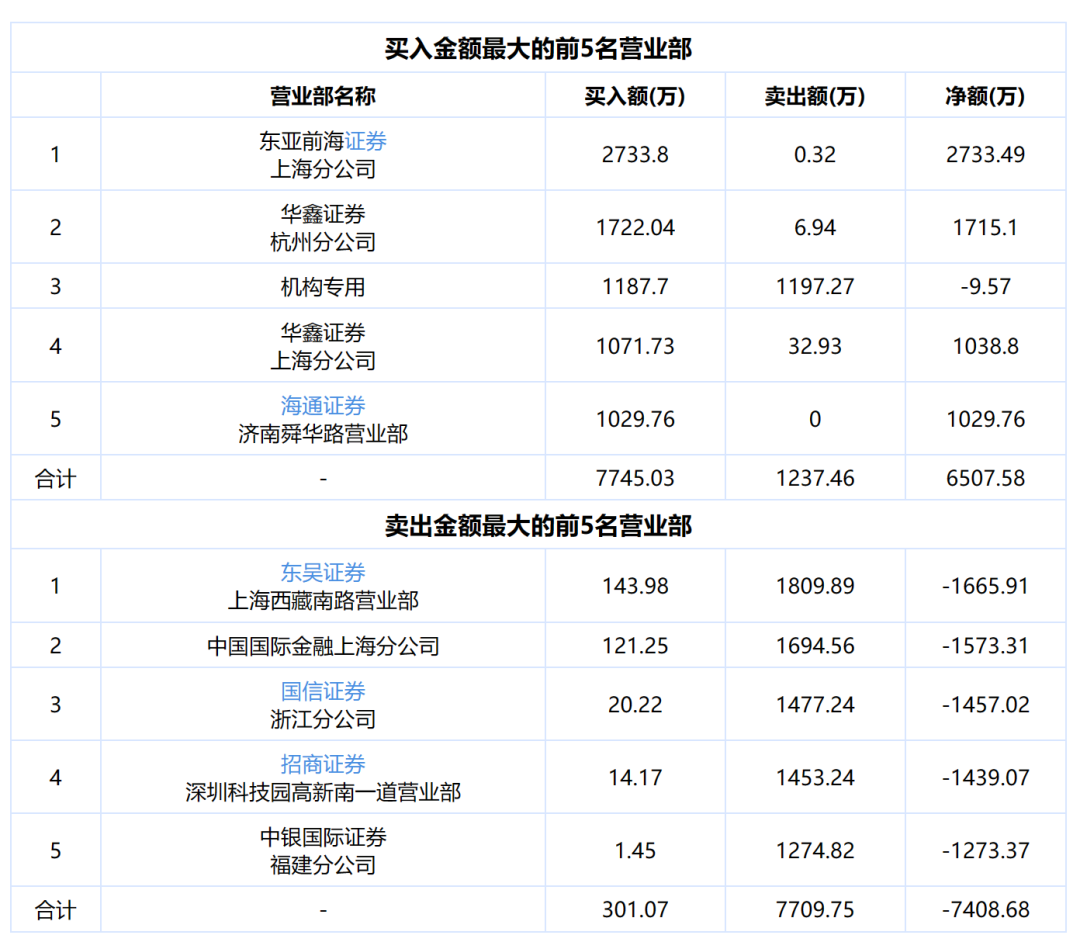 复盘汇纳科技昨日龙虎榜,交易资金以游资为主。买一、买二席位东亚前海证券上海分公司、华鑫证券有杭州分公司分别买入2734万元、1722万元;卖一席位东吴证券上海西藏南路营业部1810万元。此外,一个机构专用席位买入1188万元并卖出1197万元。