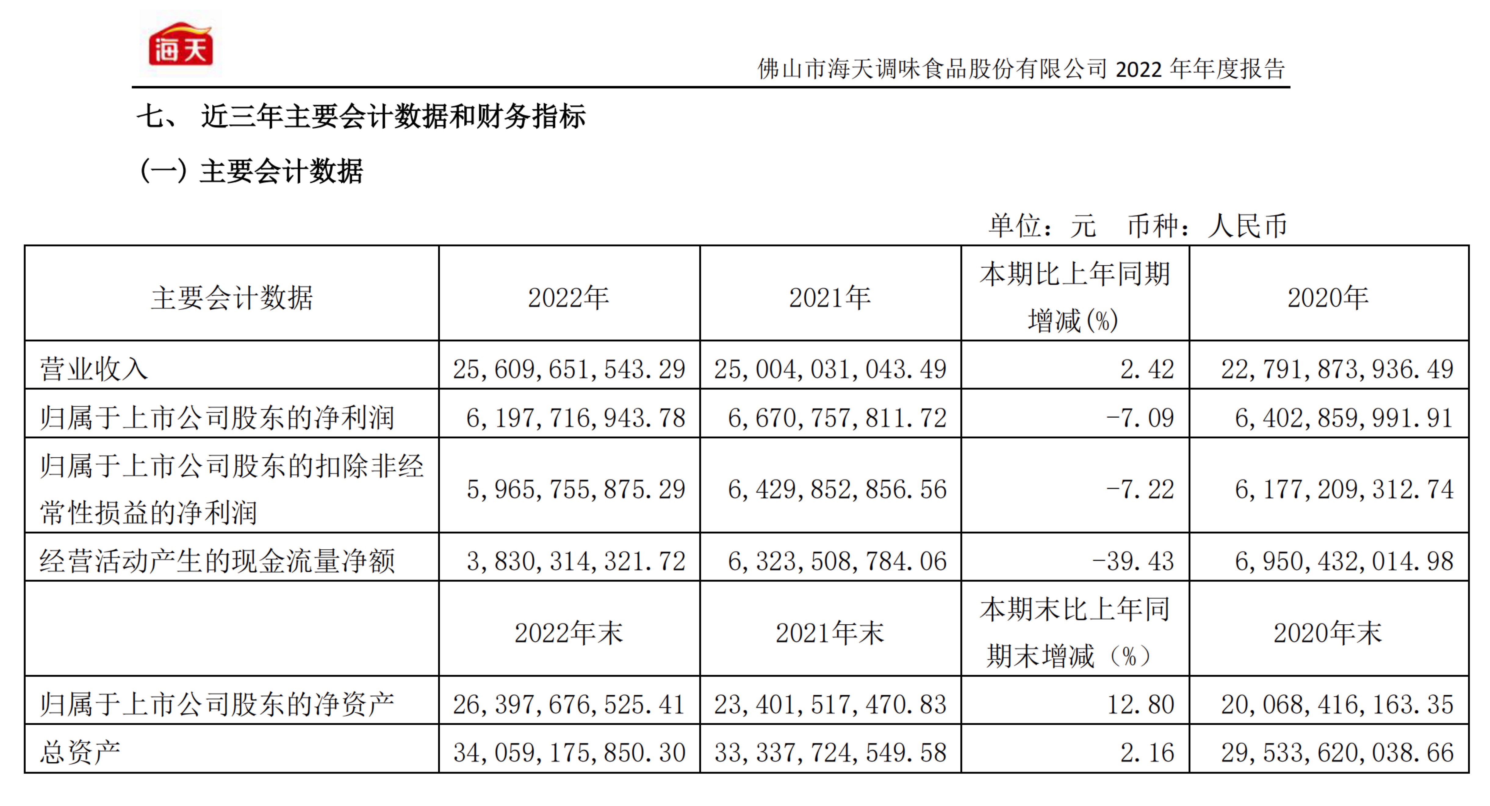 数据显示,2022年,海天味业营业收入256.10亿元,同比增长2.42%;净利润61.98亿元,同比下降7.09%;整体净利率24.22%,同比下降2.46个百分点。