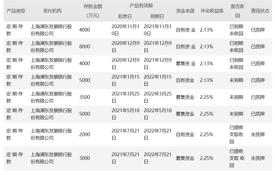 据资料,智慧能源投资公司分别于2020年11月10日、2020年12月9日、2021年1月15日、2021年3月25日、2021年5月18日及2021年7月21日使用暂时闲置资金购买了浦发银行南通分行的定期存款。