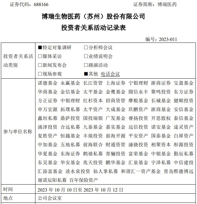 据博瑞医药最新披露的投资者调研报告显示,10月10日-12日,公司接待了大量的机构投资者。