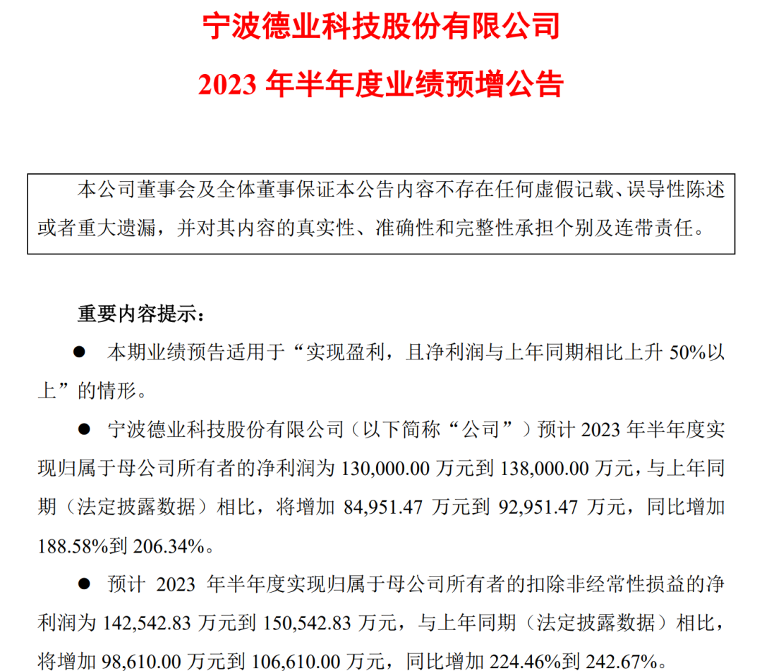 7月10日晚间,德业股份释放业绩预喜信息,公司预计上半年净利润为13亿元至13.8亿元,同比增长188%到206%。德业股份在业绩预告中强调,上半年亚非拉地区户用储能市场需求持续爆发式上升,公司户用储能产品销售收入大幅增长。