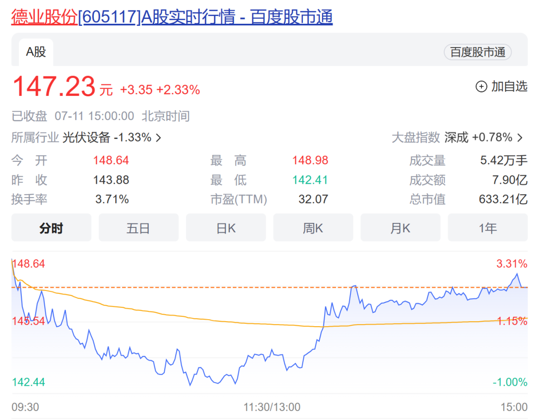 7月11日,德业股份的股价已经企稳,全天上涨2.33%。