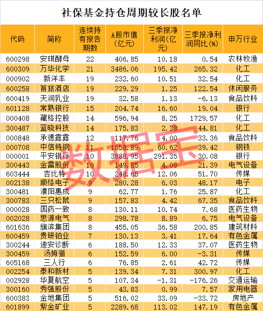 社保基金最长情股票持仓22个季度