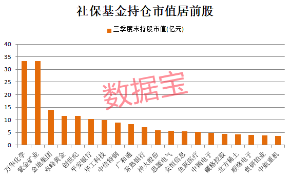 数据宝统计,截至今年三季度末,目前共有66股前十大流通股东中出现社保基金身影。