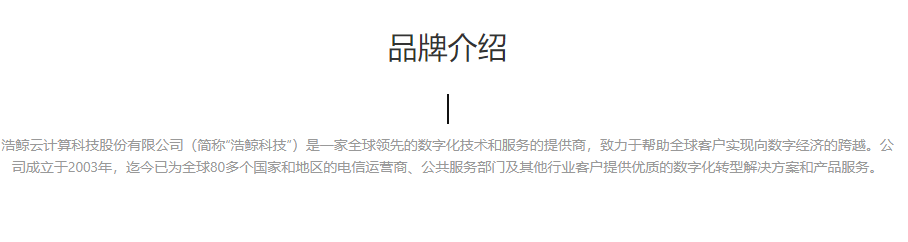 官网显示,浩鲸科技是一家全球领先的数字化技术和服务的提供商,迄今已为全球80多个国家和地区的电信运营商、公共服务部门及其他行业客户提供优质的数字化转型解决方案和产品服务。