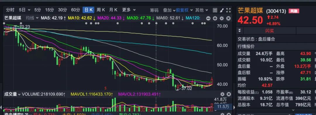 当日,受益于“元宇宙”光环,芒果超媒以大涨6.89%收盘。