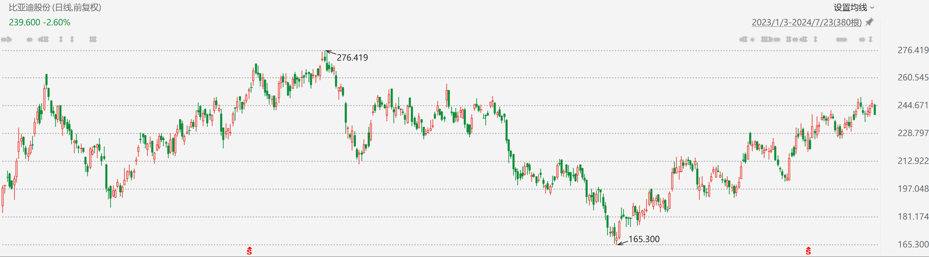 截至发稿,比亚迪跌2.11%,报240.8港元。