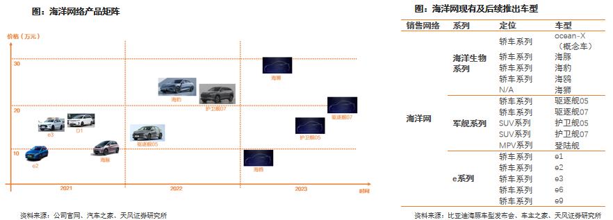 在品牌网络方面,公司海洋网络和王朝网络齐头并进,车型周期向上,市占率稳步提升。