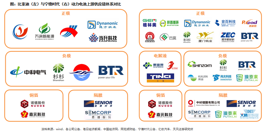 在动力电池方面,比亚迪上游材料供应链体系数质兼具。上游材料供应链包含多家供应商,可以加强对供应商话语权的同时,增加自身供应商的质量和供应体系的稳定性。