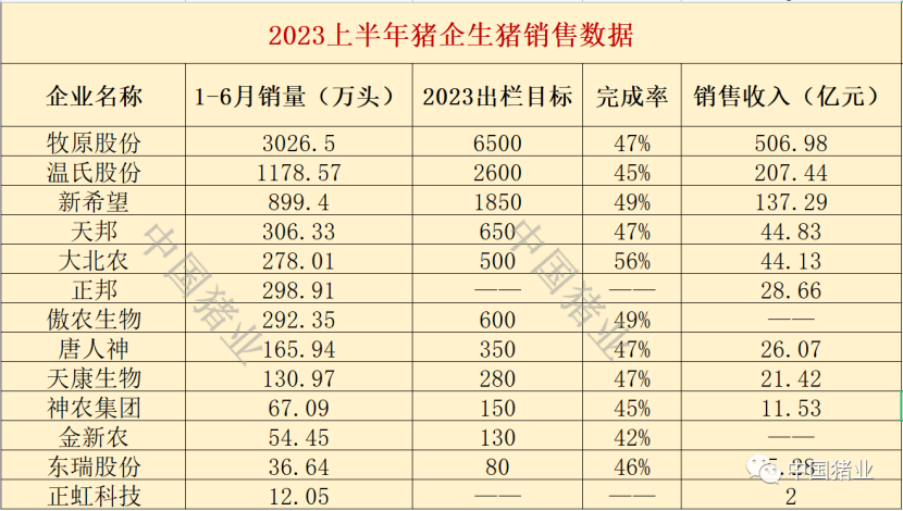展望下半年,牧原股份表示养殖完全成本仍有进一步下降空间。“2023年公司将继续通过提高精细化管理水平,加强疾病净化与健康管理,进一步降低公司整体生产成本。同时随着饲料原材料价格向合理区间进一步回归,下半年原粮成本回归带来的养殖成本下降将逐步体现。”牧原股份称。
