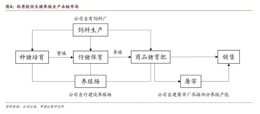 总体来看,当前养殖企业降低成本的路线主要是两条,分析人士指出,其一是横向的精细化管理,如温氏股份2022年通过调整日粮配方结构,发挥集采优势,优化种群结构,提升产能利用率。其二是纵向的一体化布局,牧原股份自2020年便开始加码下游屠宰业务,至2022年末其投产屠宰厂增至10家,投产产能合计2900万头/年。同时,其先后与5家公司以合资或增资形式合作,项目包含研发低蛋白日粮、兽药疫苗研发、开发屠宰产品等,以此降低综合成本。规模化是整个生猪养殖行业发展的必然。