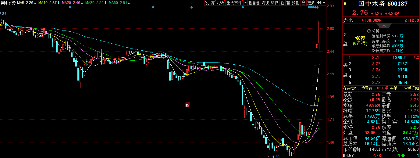 7月29日,国中水务早盘拉升,截至发稿,股价涨停,报2.76元。