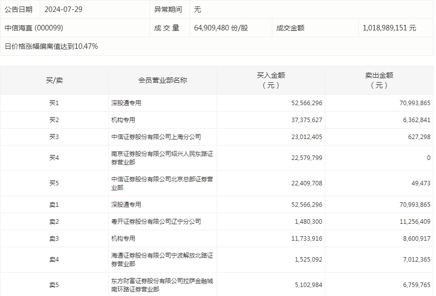 中信海直今天涨停。盘后数据显示,2家机构出现在龙虎榜单上,合计净买入3414.58万元;中信证券股份有限公司上海分公司买入2301.24万元,同时卖出62.73万元;粤开证券股份有限公司辽宁分公司买入148.03万元,同时卖出1125.64万元。