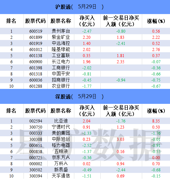 北向资金今日净买入33.99亿元。个股方面,紫金矿业、比亚迪、隆基绿能分别获净买入2.2亿元、2.04亿元、2.02亿元。格力电器净卖出额居首,金额为2.52亿元。