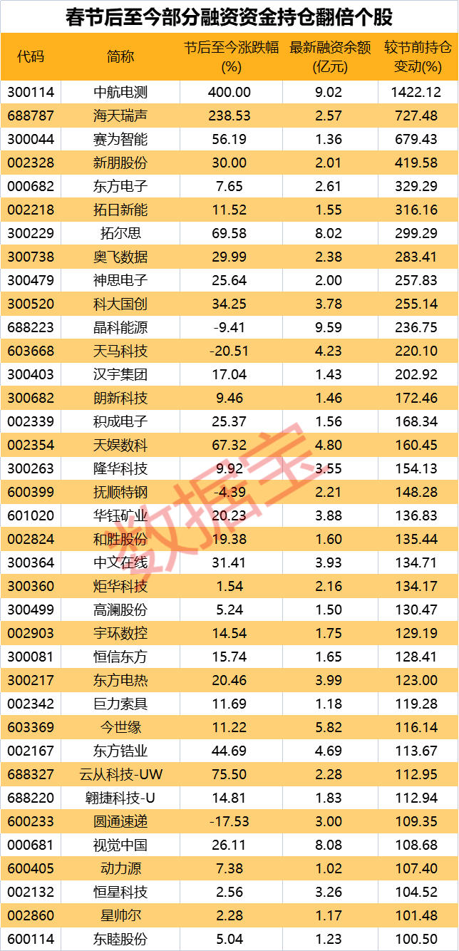 37股融资资金最新持仓较年前翻倍