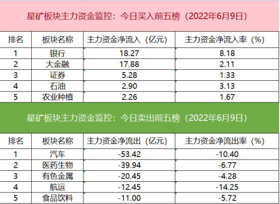 从主力板块资金监控数据来看,今日银行和券商板块主力资金净流入居前。