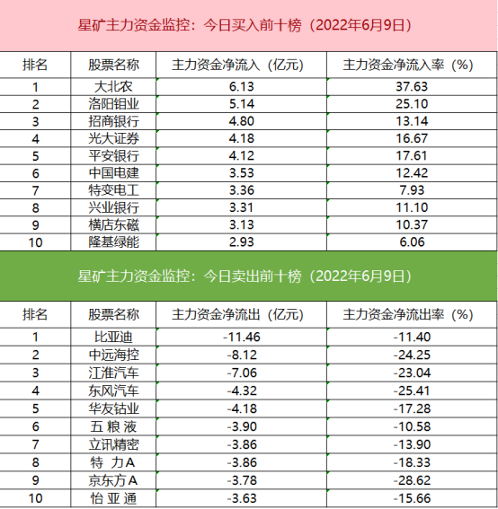 从个股主力资金监控数据来看,主力资金净流入前十的个股中金融股较多,大北农主力资金净流入居首。
