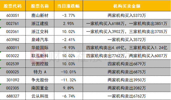 今日龙虎榜机构榜单上榜个股以卖出居多,尾盘跳水跌停的蓝筹股华能国际遭四家机构卖出近5亿。今日涨停的磷化工概念股云图控股遭四家机构卖出近7000万。