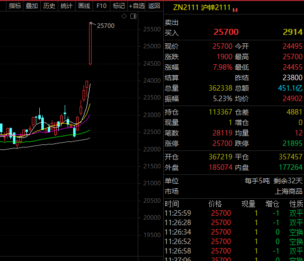 受全球宽松及市场需求影响,包括锂金属在内,全球大宗商品掀起一波大牛市。江特电机作为锂矿概念之一,也享受到了这波行情。而近期市场上的大宗商品明星,当属锌。节后沪锌主力期货合约已经六连阳,从节前的22370元/吨涨至今天中午收盘25700元/吨。