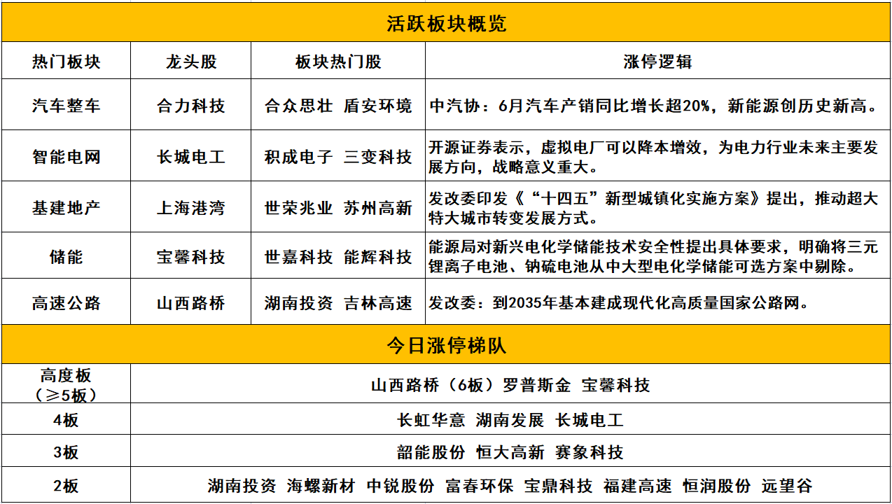 汽车产业链的合力科技5天4板,智能电网方面长城电工4板、积成电子4天3板。